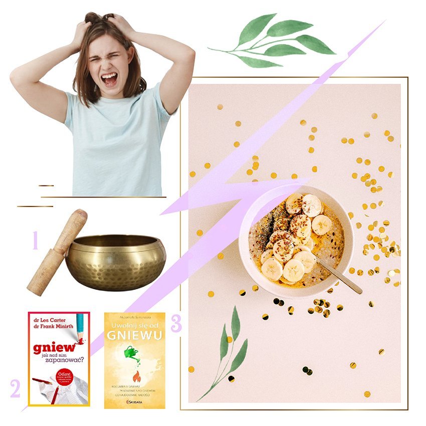 Duży wpływ na samopoczucie ma dieta. Nie od dziś wiadomo, że ”gdy Polak głodny, to zły”! 🙂 Zespoły naukowców z Uniwersytetu Stanowego Ohio w Columbus, Uniwersytetu Kentucky i Uniwersytetu Karoliny Północnej udowodniły, że że niskie stężenie glukozy we krwi może nasilać gniew i agresję między małżonkami! W języku angielskim pojawiło się nawet nowe pojęcie “hangry”, oznaczające kogoś złego z powodu odczuwania głodu (powstało jako miks słów “hungry”, czyli głodny i “angry”, a więc zły). Staraj się jeść zdrowe, pełnowartościowe posiłki regularnie, nie doprowadzając do efektu “ssania w żołądku”. Pamiętaj przy okazji o tym, co mówiłam w filmie poświęconym jedzeniu emocjonalnemu (do obejrzenia TUTAJ): kompulsywne zajadanie gniewu pysznym jedzeniem (zwłaszcza słodkim, wysokokalorycznym czy “śmieciowym”) absolutnie nie jest dobrym rozwiązaniem, a wielu z nas się do zdarza (przyznaję, że też w złości potrafiłam w swoim życiu zjeść tabliczkę czekolady i wiaderko lodów). Genialne na stres są: gorzka czekolada, produkty zawierające węglowodany złożone, białko i zdrowe tłuszcze.
